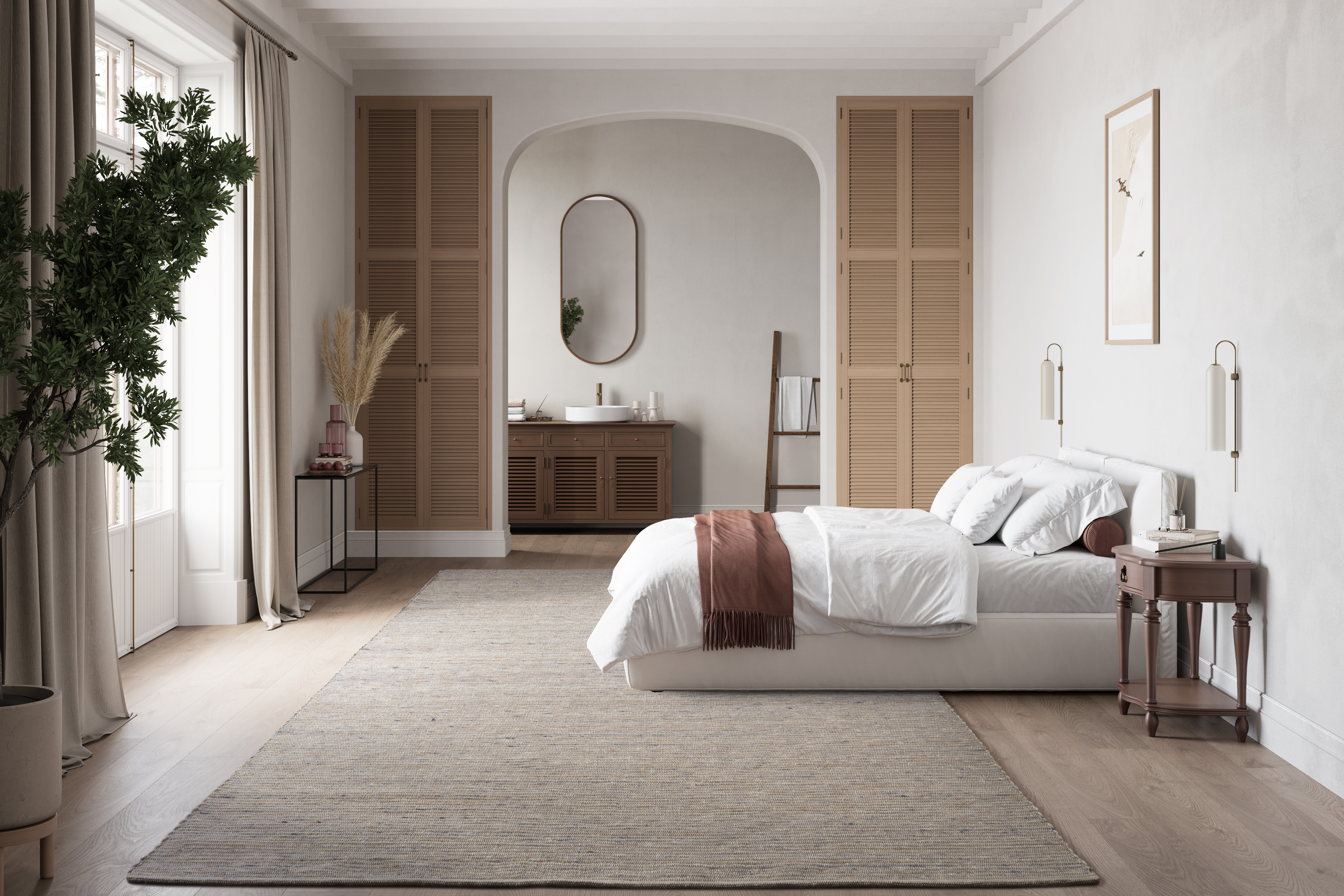 BEAT MODA is an elegant, fine and flat woven carpet. The black warp creates a detailed pattern and gives a calming, elegant rhythm to the carpet. The Beat yarns beautiful colour blends appear to be different in this tight and flat texture. BEAT MODA is available up to a width of 400 cm and is usable on both sides.