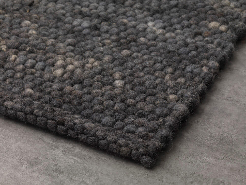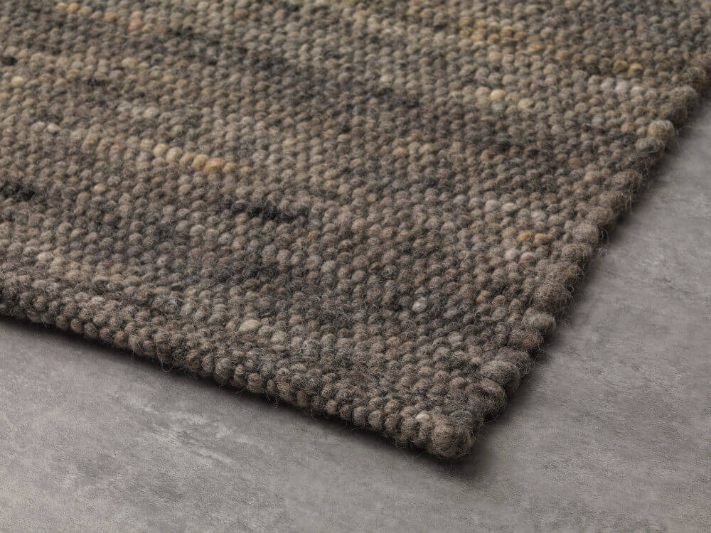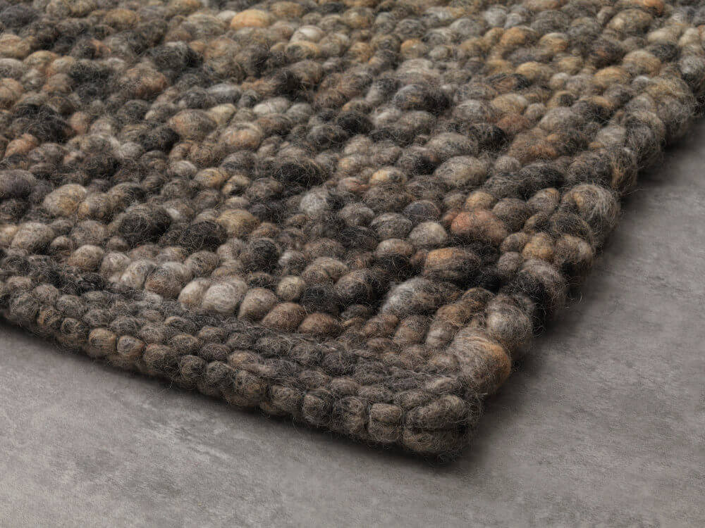 BEAT STONE is the most voluminous carpet in the BEAT COLLECTION and has its charm from the use of very thick yarn. The structure can be used on both sides, guarantees a unique walking feeling and has a wonderful handmade look. The black warp yarn creates an interesting contrast within the texture. BEAT STONE is available up to a weaving width of 400 cm.