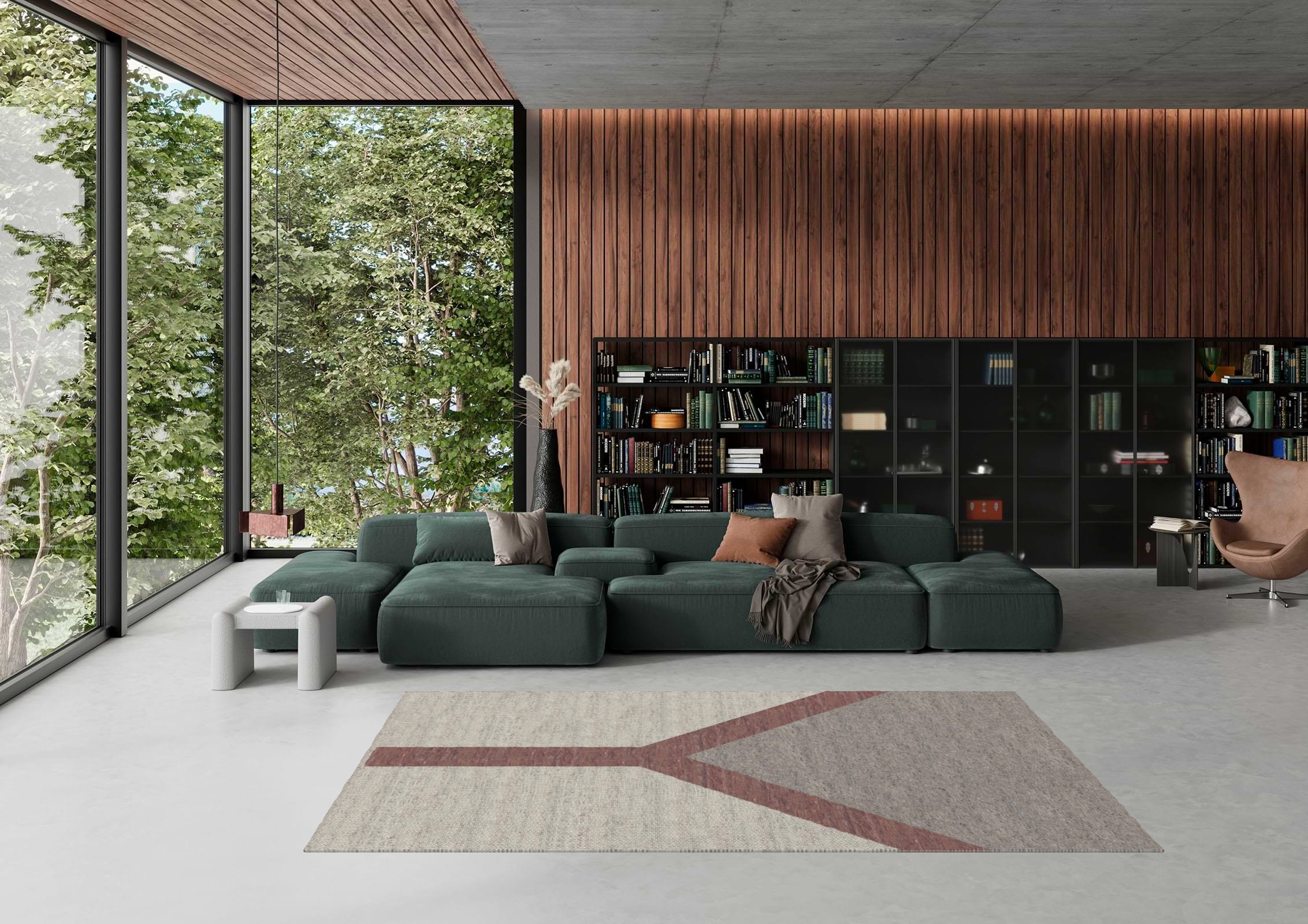 The wear layer of BEAT MODA D is made of 100% felted virgin wool, and the carpets are available in widths of up to 400 cm. The carpet can be used on both sides, and custom color combinations are also possible, which you can create with our configuration software.