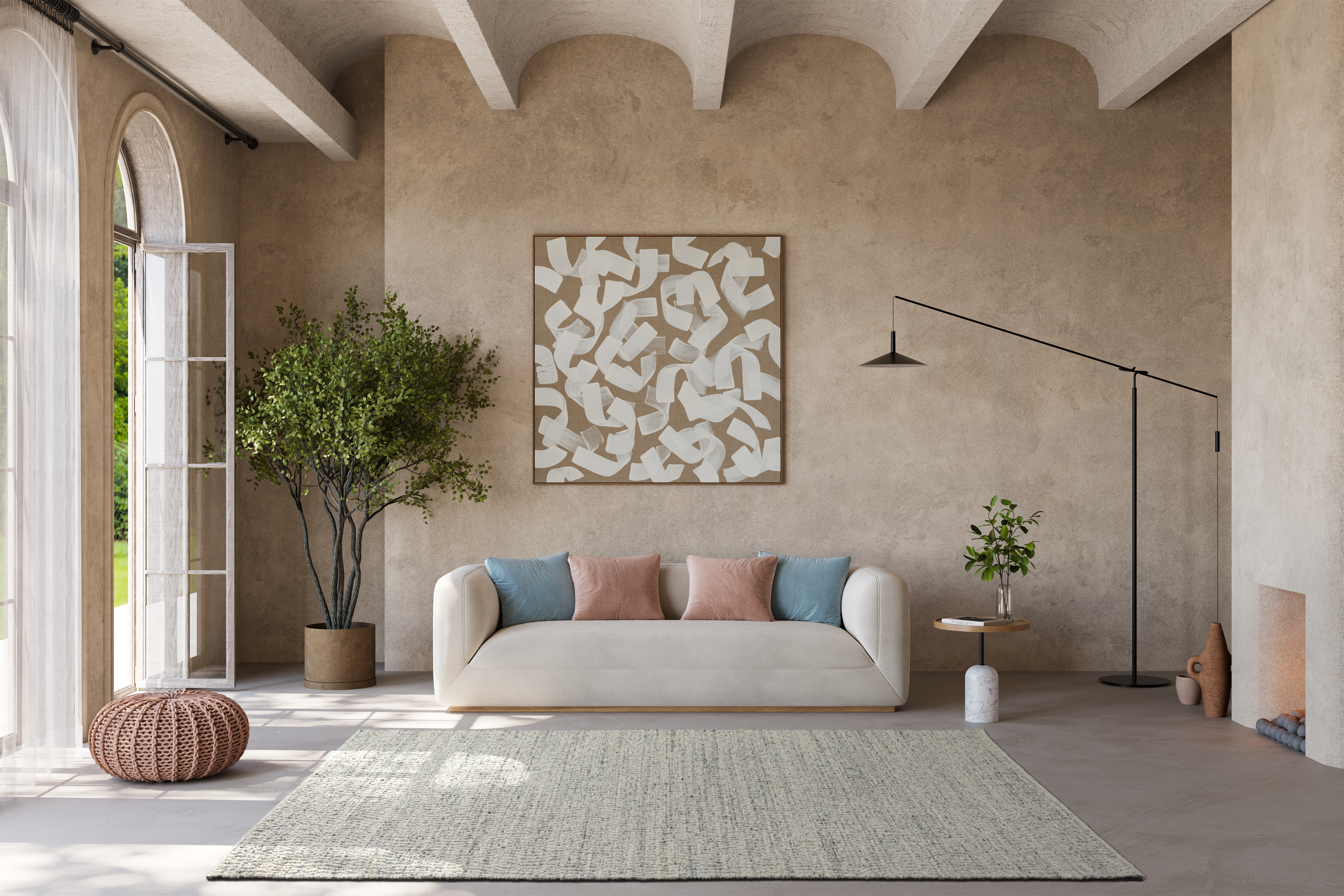 PLAYA OLA is a delicate, firm texture with an elegant, slightly undulating surface. PLAYA OLA lies compactly on the floor and is also suitable for living areas that need to withstand a little more wear and tear. All 17 colors of the PLAYA color palette are available for this purpose. The surface of PLAYA OLA is made of 100% virgin wool. PLAYA OLA is available up to a weave width of 300 cm and can be used on both sides.